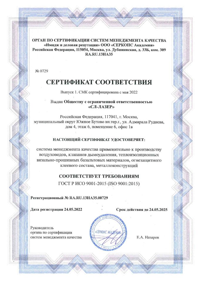Компания Sl-LASER предлагает огнестойкие базальтовые рулонные материалы для защиты систем вентиляции и дымоудаления, изготовленные в соответствии с ГОСТ.