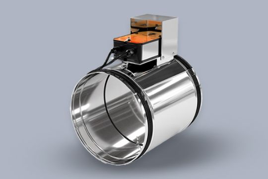 Огнезадерживающий клапан, открытый в исходном состоянии — обеспечивает естественный приток воздуха через систему вентиляции. При возникновении пожара клапан закрывается, блокируя попадание продуктов горения в систему вентиляции.