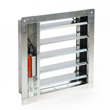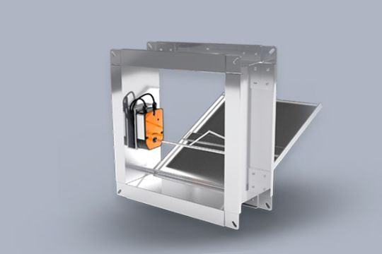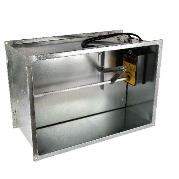 Универсальный огнезадерживающий клапан для общеобменных вентиляционных систем. В исходном состоянии клапан открыт, при пожаре — закрывается, после пожара — открывается, обеспечивая отток загрязненного воздуха.